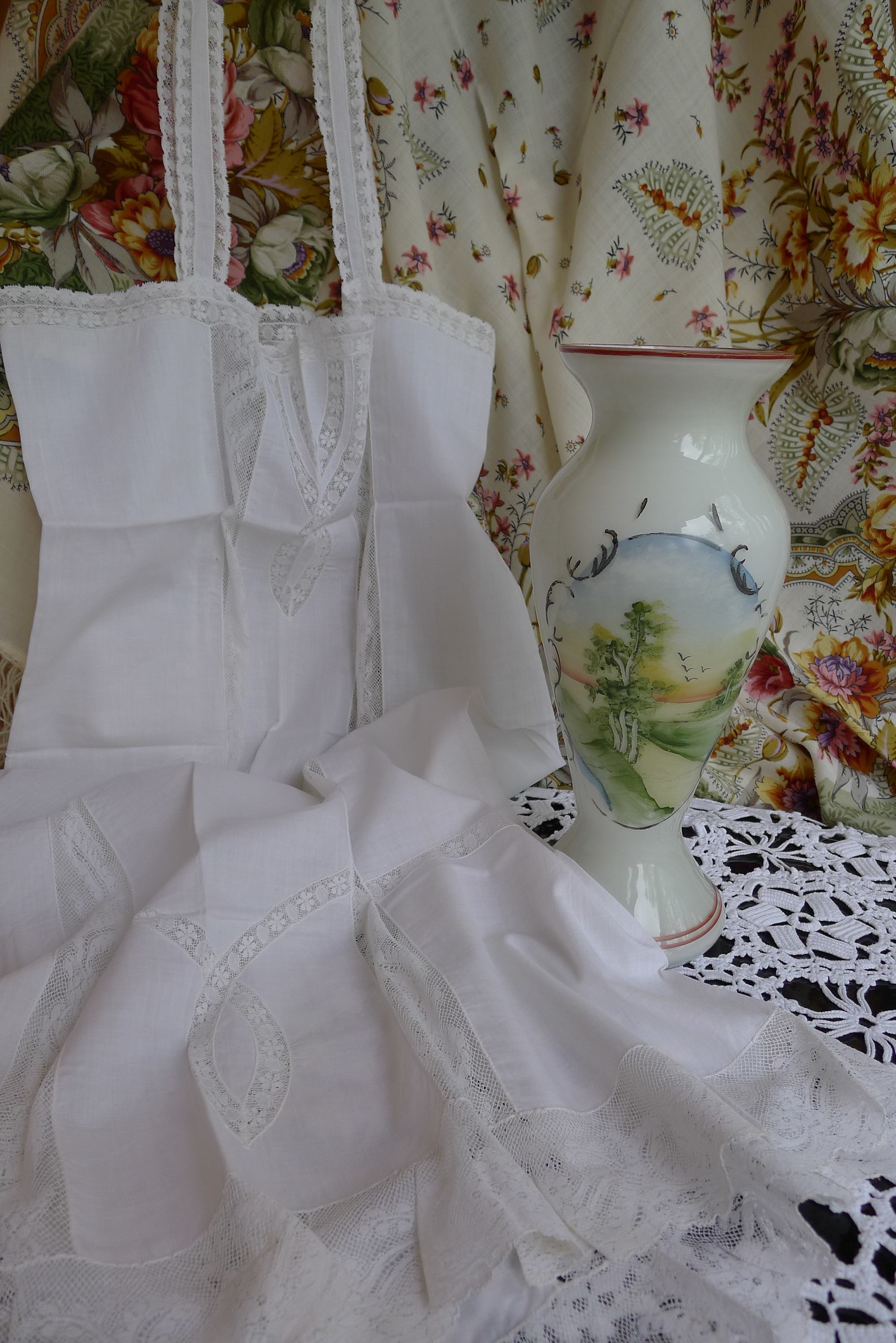 И сохранилась батистовая сорочка ее молодости, т.е. годов 1920-1930-х. Тончайший батист, тончайшее хлопчатобумажное кружево, а швы какие! В белье такого качества тогда ходили самые простые люди (бабушка выросла в детдоме).