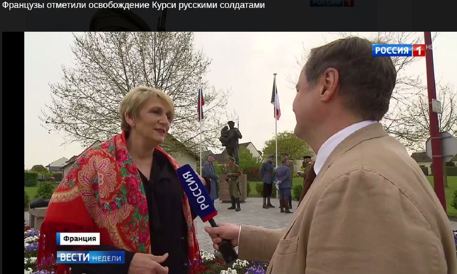 А 16 апреля в выпуске Вестей показали репортаж Алексея Денисова из коммуны Курси в Шампани, где отмечали столетие одной из битв 1-й мировой войны – освобождения Курси от немцев Русским экспедиционным корпусом.