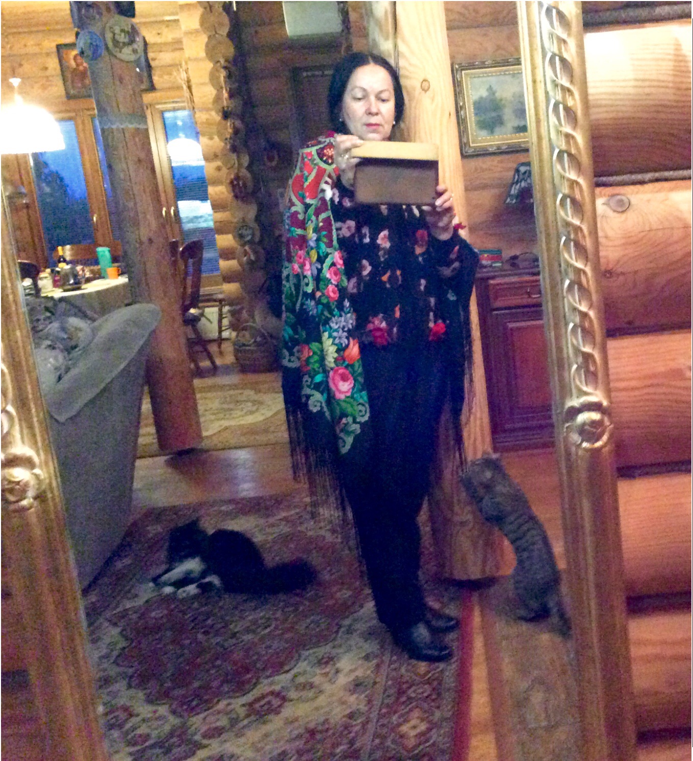 Sheri На Вас и красиво, и торжественно... и одной из кошек тоже явно шаль нравится! ^%