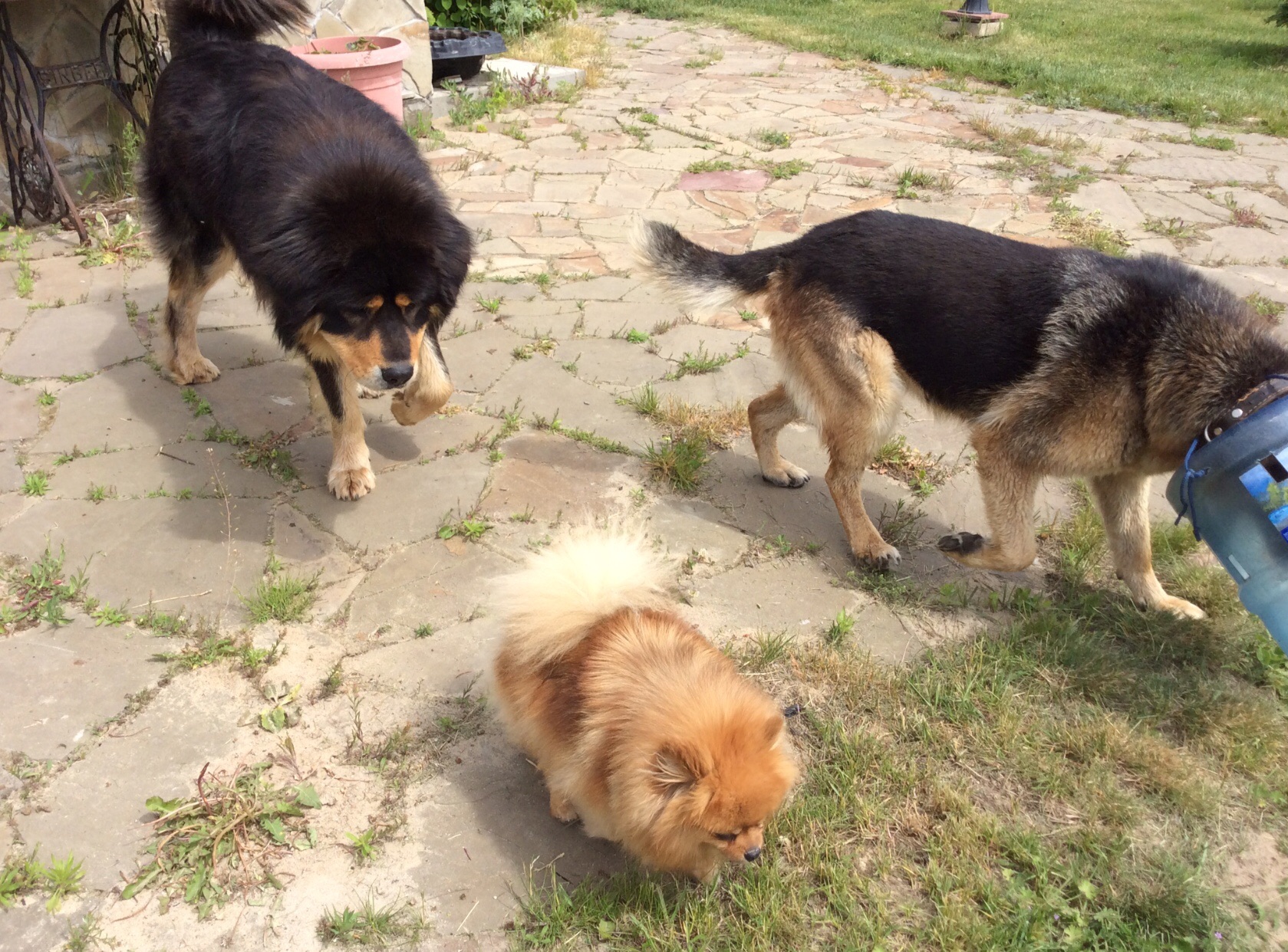 Вот гуляют. А мы отходим от стресса. Нонка выскочила к собакам неожиданно, думали, что все, щас будет драка. Но нет. Гуляют... Красота!