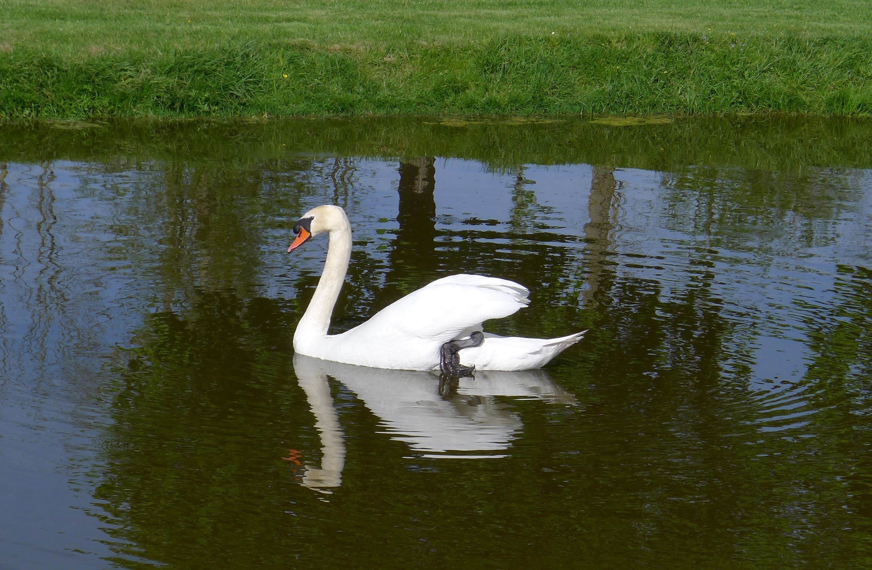 В прудах сначала плавали гуси и утки, но их разогнал злобный лебедь и плавал потом в одиночестве.