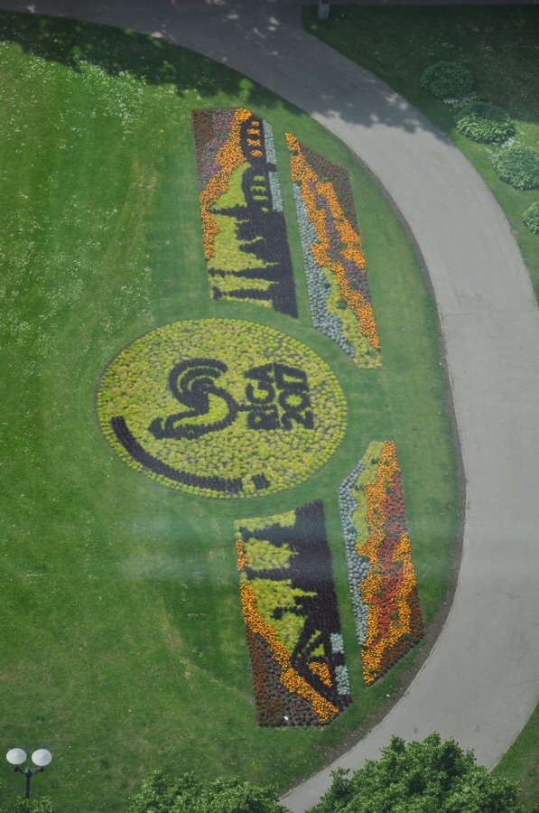 И вид на цветочные клумбы с 26 этажа.