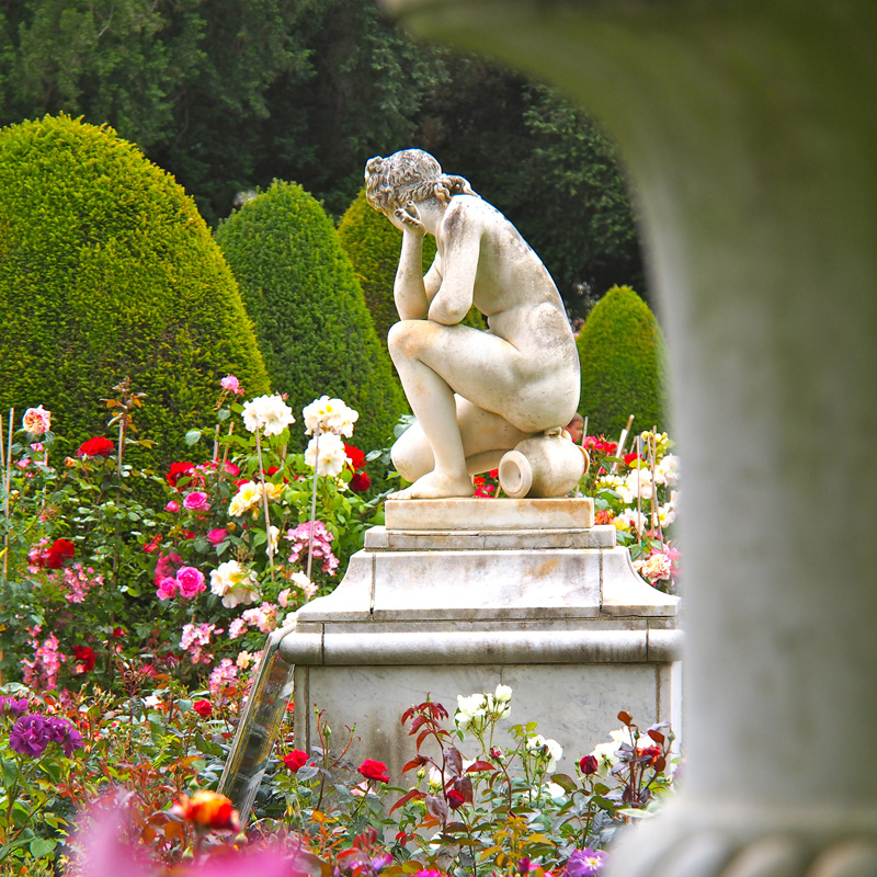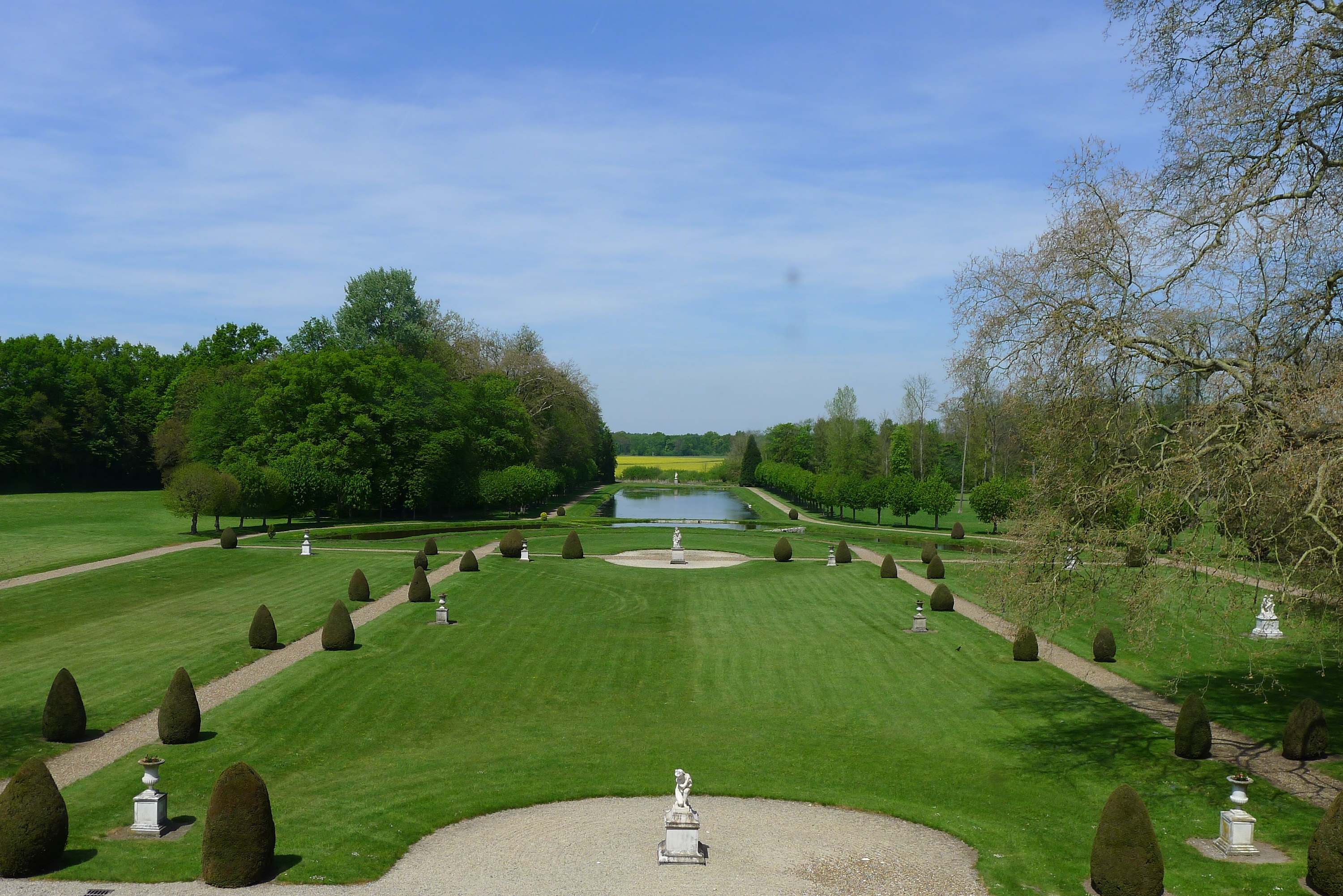 Вокруг замка-музея регулярный парк, с подстриженными деревьями, скульптурами и прудами.