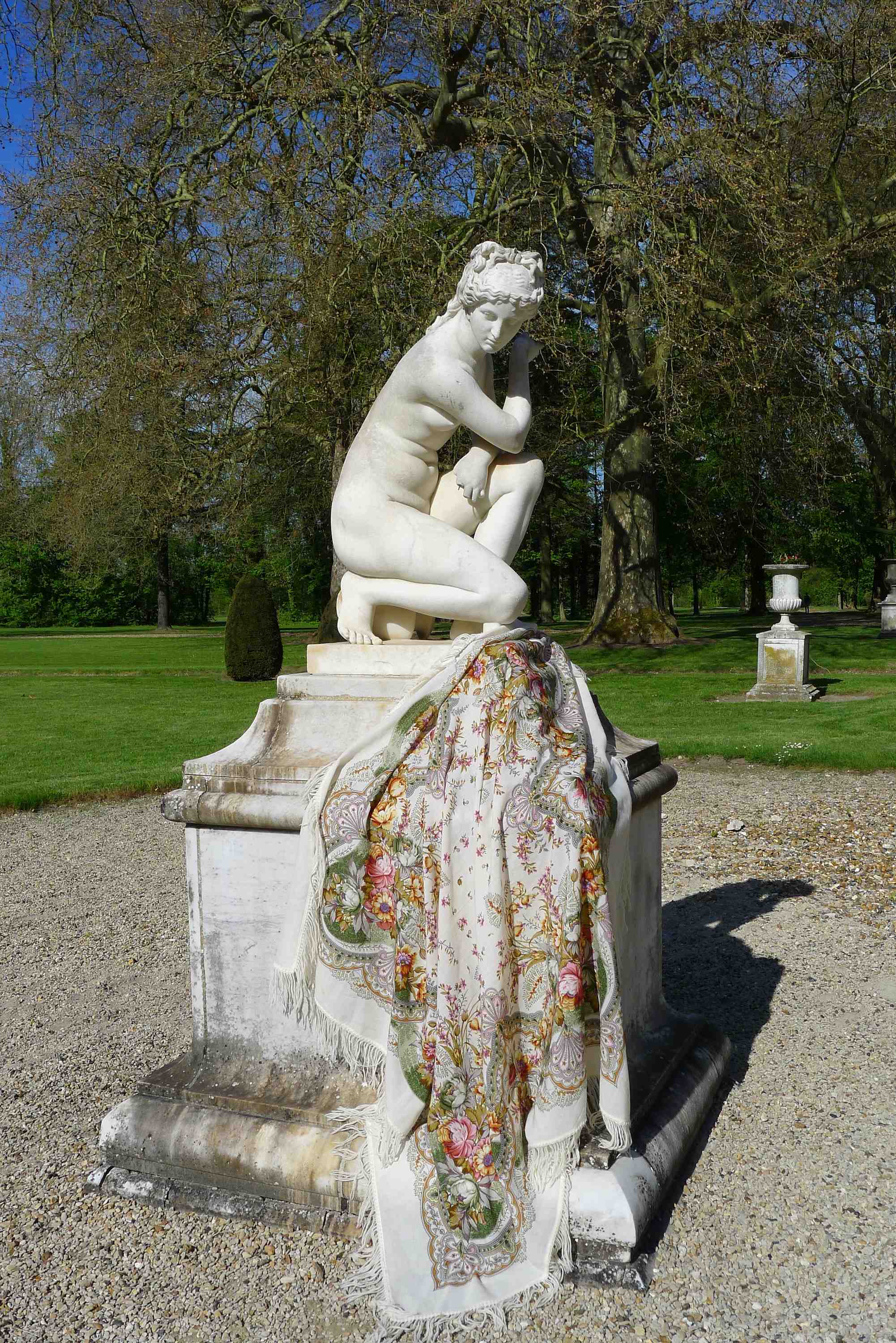 Вокруг замка-музея регулярный парк, с подстриженными деревьями, скульптурами и прудами. В прудах сначала плавали гуси и утки, но их разогнал злобный лебедь и плавал потом в одиночестве. Вода в пруду прозрачная, но темная, как в наших лесных прудах – наверное, торфяная почва.
