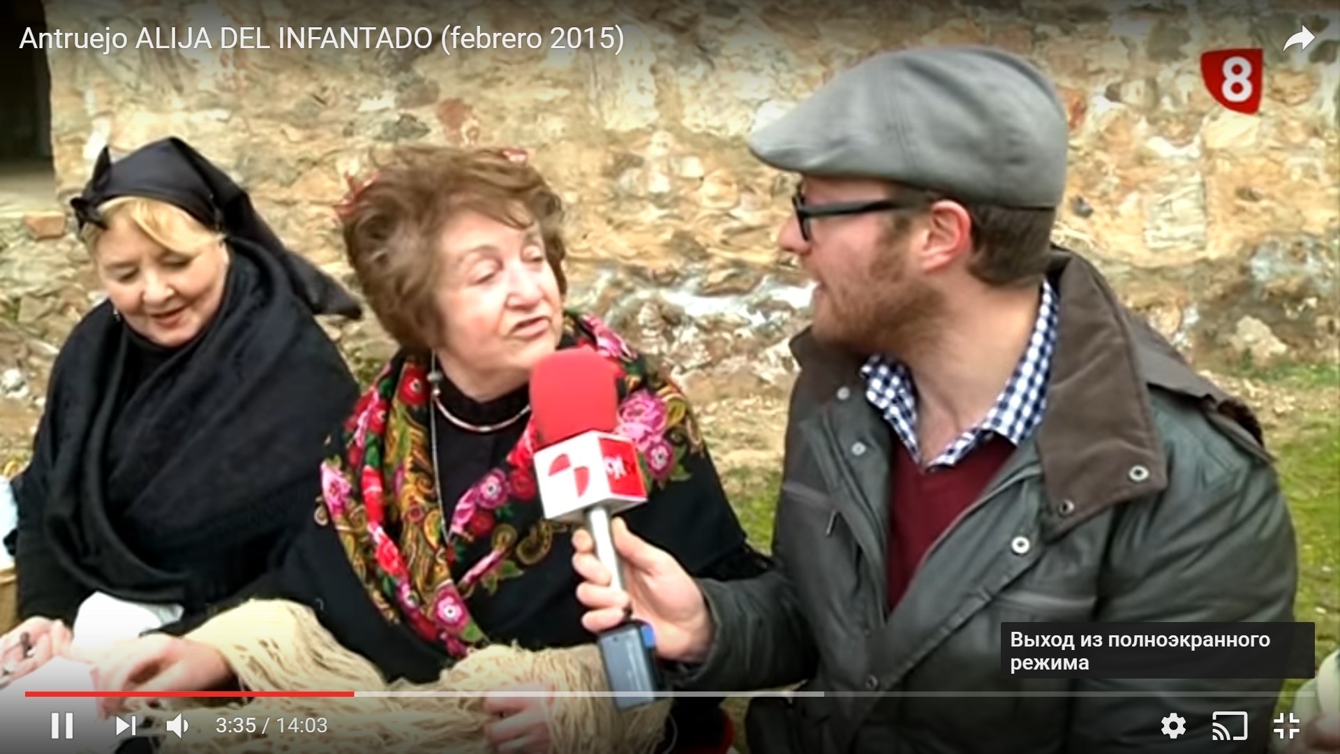 И видео с карнавала в Алия-дель-Инфантадо в феврале 2015 г., корреспондент берет интервью у пожилых дам в костюмах, прядущих шерсть, на одной из них Филигрань.
