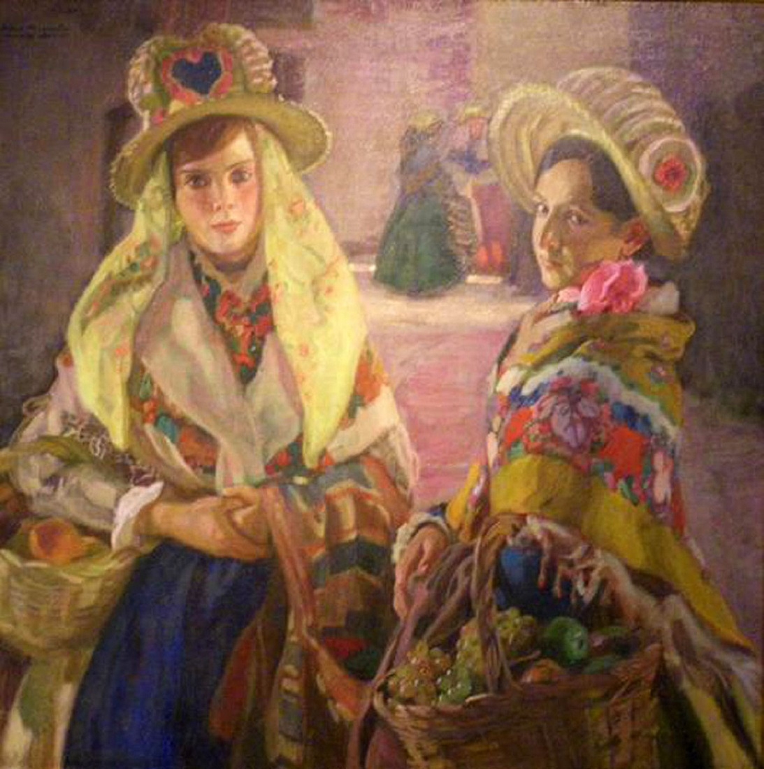 На его картинах много и женщин, и шалей. Простолюдинки – в шерстяных цветастых платках, знатные дамы – в шелковых мантонах.