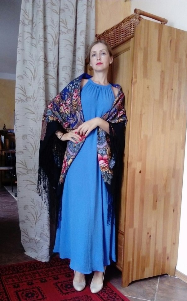 Светана, отличный выбор! Мне тоже больше всего с Княжеским понравилось. Эффектное сочетание двух сложных густо-голубых оттенков на платье и на шали. Они смотрятся специальным комплектом, как созданы друг для друга. И всё это, конечно, очень идёт.
