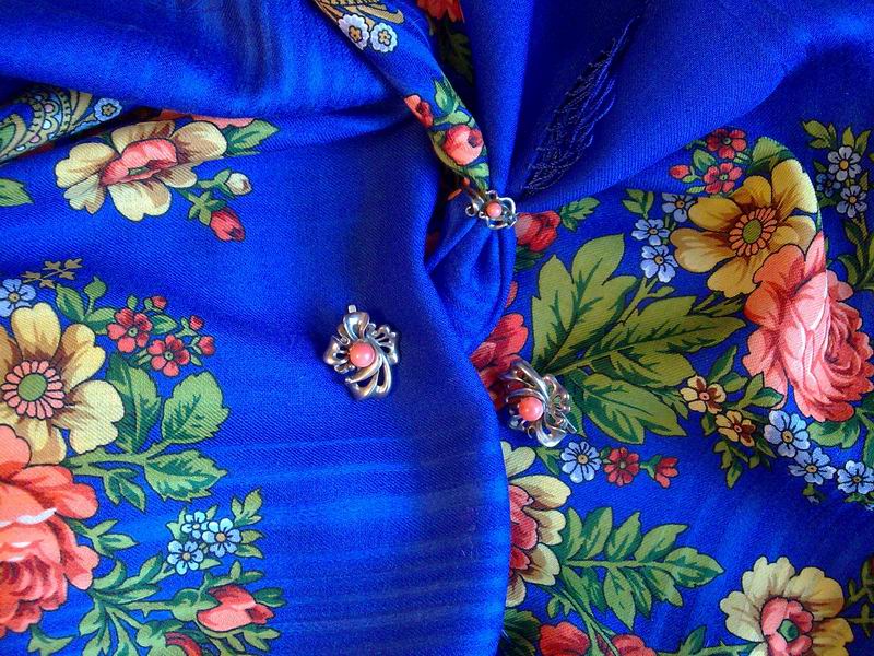 Покажу серьги с аквамарином в серебре. Платочек Утренний сад 2.