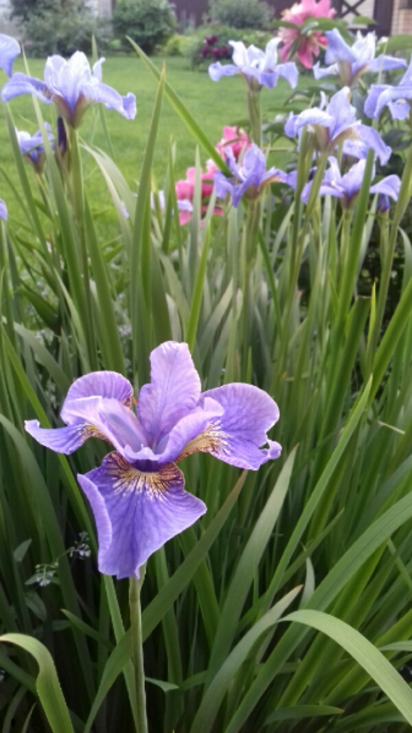 Но всем дождям назло стойко цветут еще одни мои любимчики - ирис болотный и аквилегия.
