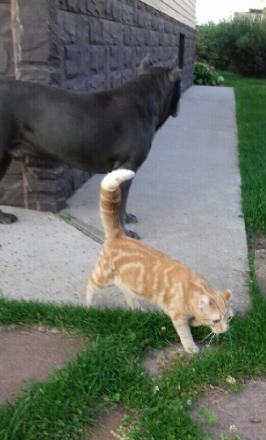 Не орал, не удрал, облазил все клумбы. Борзюша, конечно же, опекал Симбу и...посматривал вокруг.