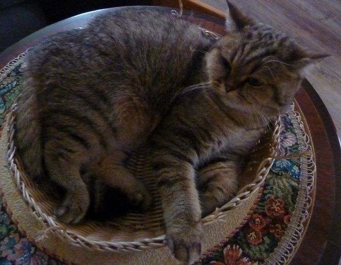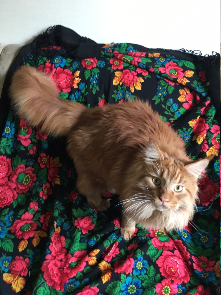 Дамы, спасибо за комплименты Кузе. ^% Он, наверно, прочитал их раньше меня и на радостях полночи карабкался на мое пузо, сваливался (котик не помещается там) и лез снова :"