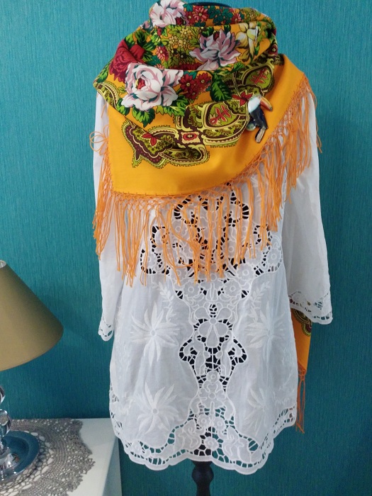 Эти легкие "крылышки" преобразили Белые розы-0", теперь видно рисунок на шали, бахрома тонко подчеркивает его красоту и сочность колорита, а не выпирает на первый план. ИМХО
