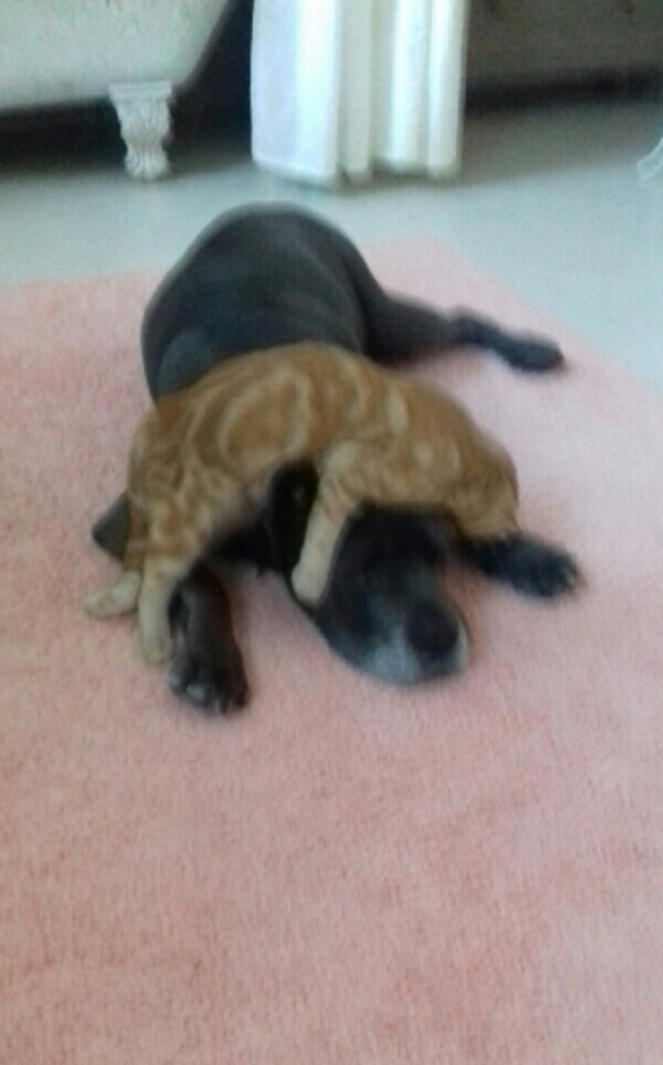 Joy- это Симба прилёг поспать на Борза или балуется ?