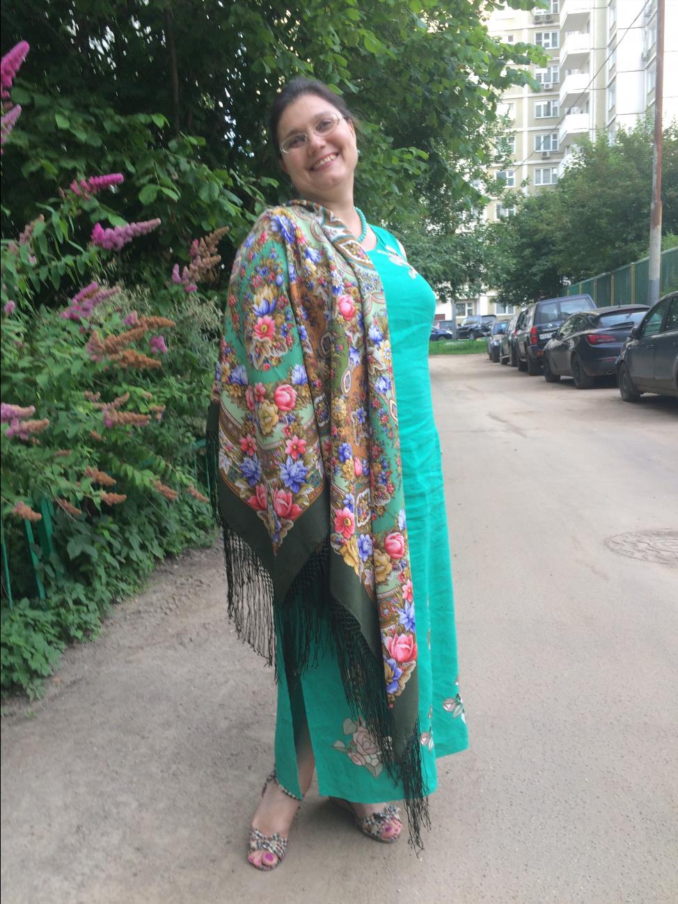 Провизор, необычайная хризопразовая зелень! Шаль и платье изумительно зазвучали.