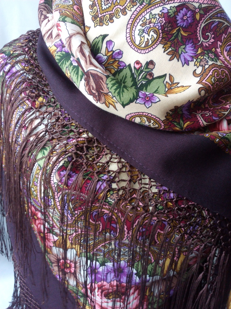 Елена, на ОМ очень интересное сочетание получилось, видимо, потому что цвет бахромы перекликается с коричневыми оттенками в рисунке шали.