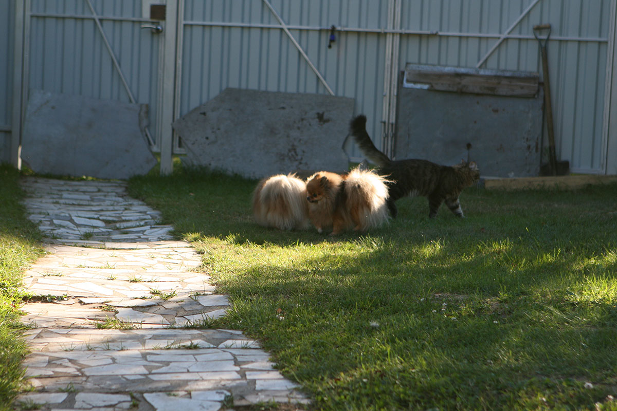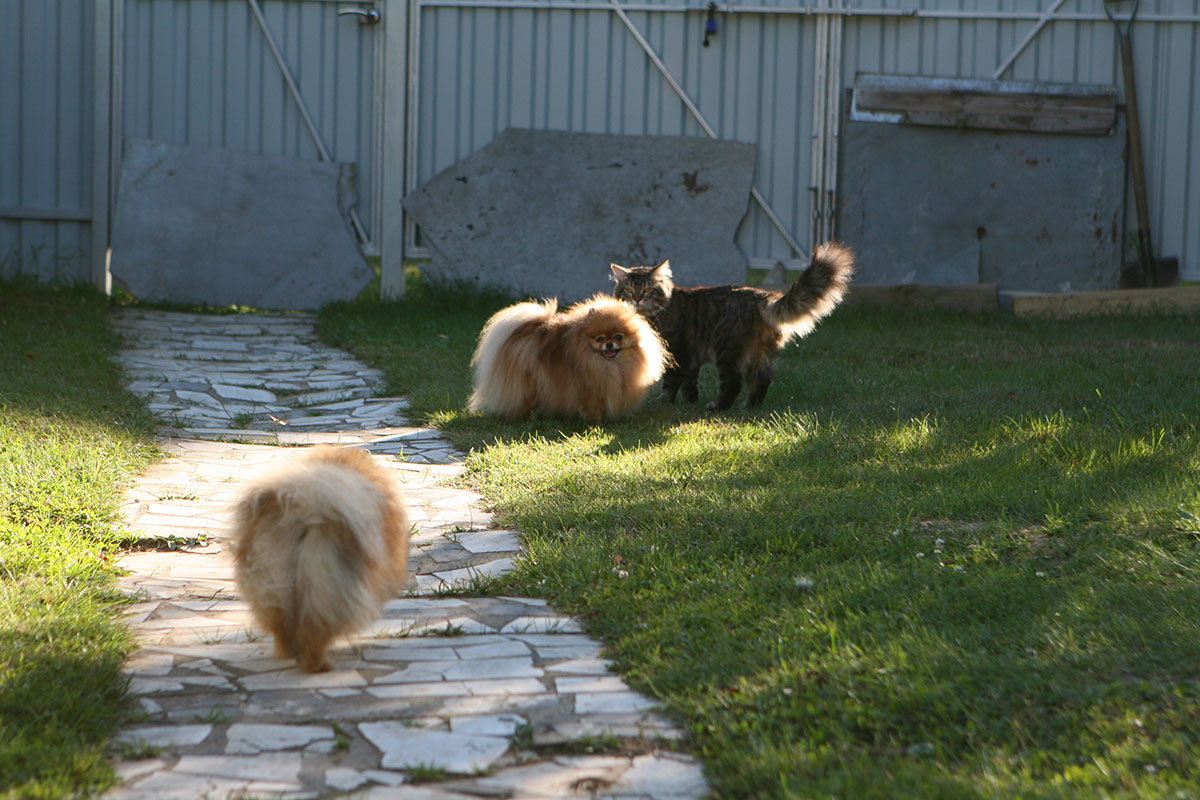 Два шпица, мать и дочка 7 и 5 лет, мать умница, а вот дочка..., такая красивая, но совершенно без царя в голове, шлёндра, так и норовит пойти погулять, постоянно за ней глаз да глаз нужен, на прогулках тоже за всякими кузнечиками охотится, а за нами даже не следит - где мы, что мы, не боится потеряться. ^Y