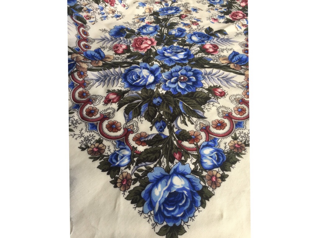 Эта синяя Гжель и Караван словно два хрустальных ручейка. Такие ясные и звонкие платки, всё же как звенит голубой и синий на белоземельном фоне