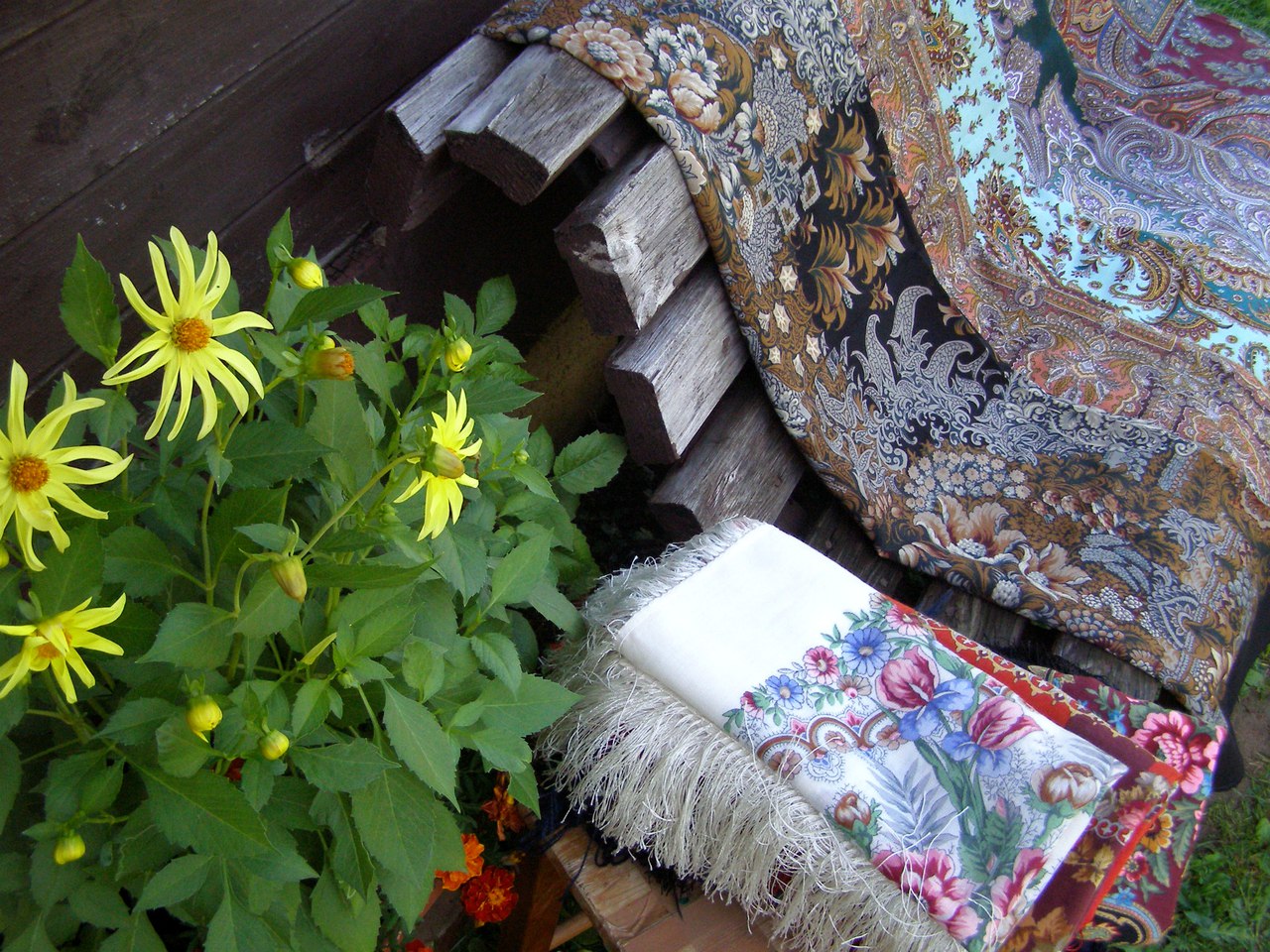 Бархатный-18 у меня с 1998 года (Кликните, чтобы почитать оффтопик)......аксакал...Очень долго был этот платок единственным и носился активно. Сейчас он на заслуженной пенсии,просто учавствует в фотосессиях.