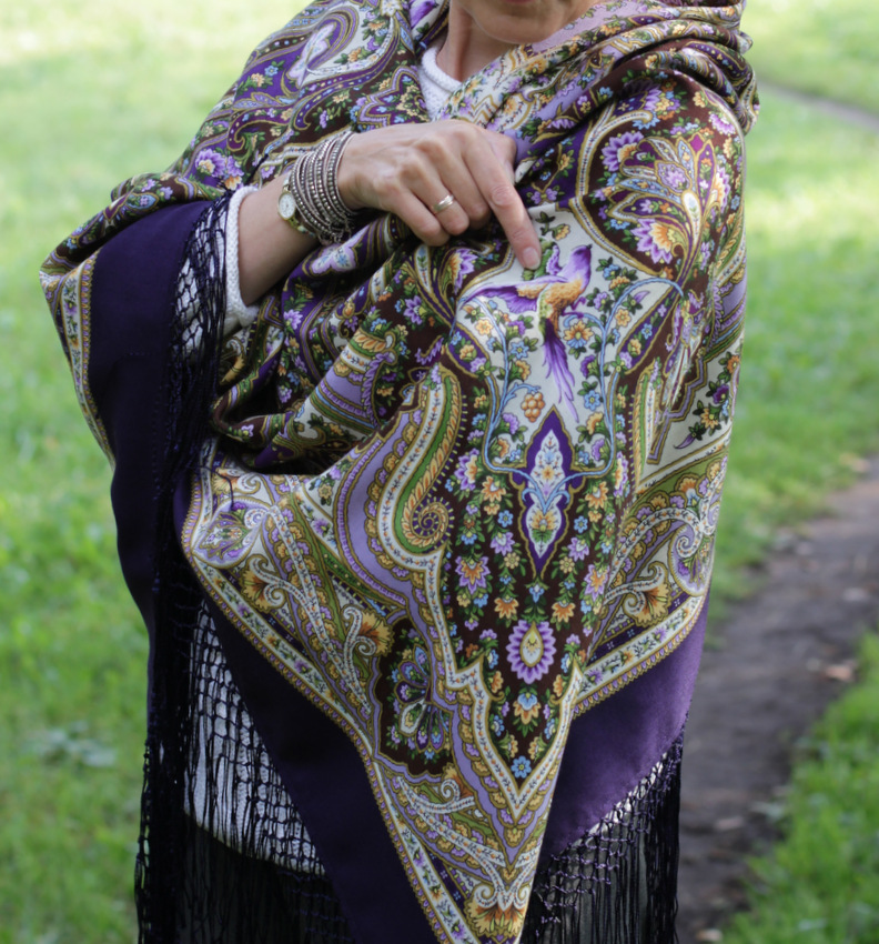 Демонстрируем ношение платков и шалей.