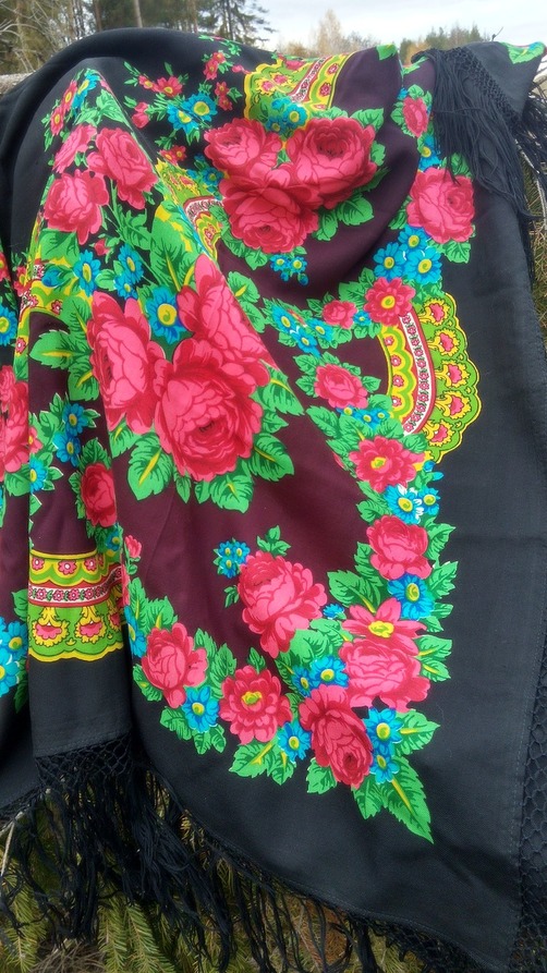 Вот мой такой ,старинушка уже, платок Клары Зиновьевой Золотые листья-7.
