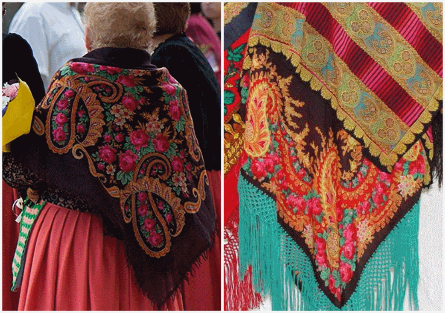 Что касается пейсли. Этот орнамент очень часто встречается на разных платках и шалях (шерстяных, шелковых, хлопковых) и в Португалии, и в Испании, что, в общем-то, не удивительно.