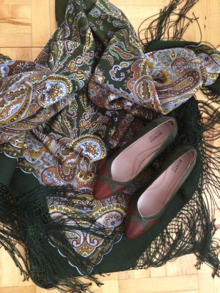 зеленые туфли Белвест. подходят ко всем моим зелеными и коричневым шалям!