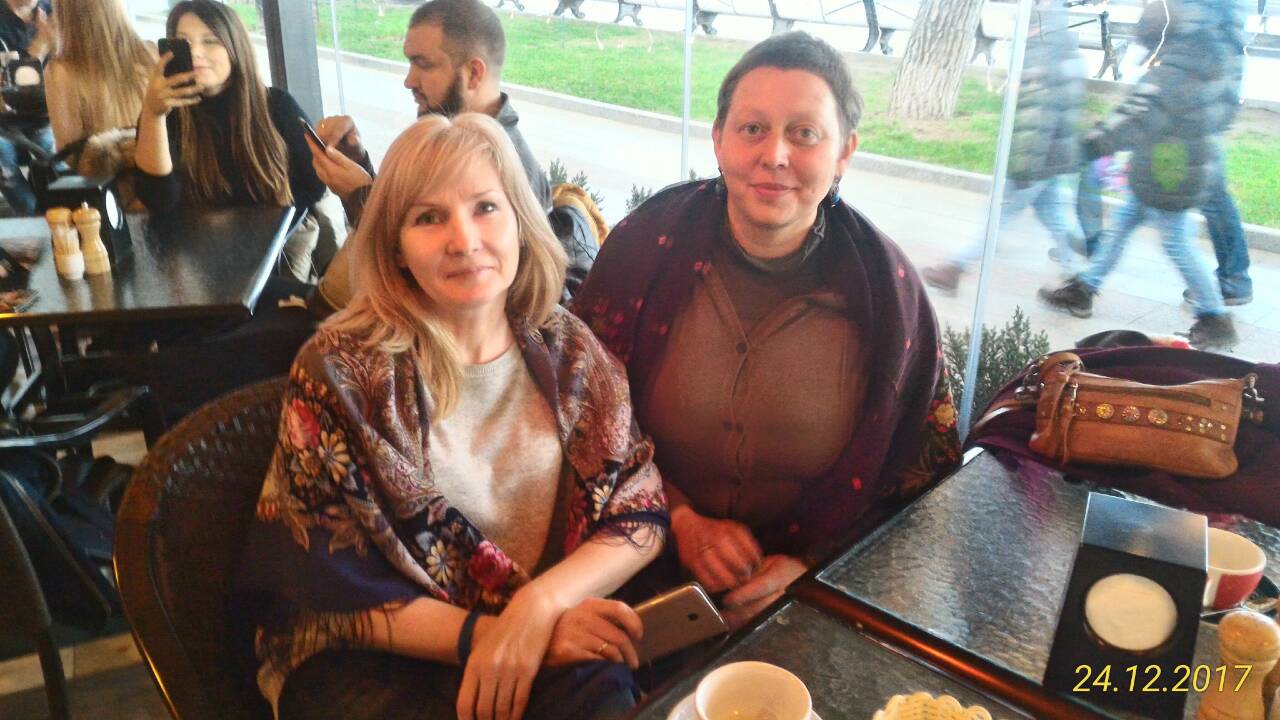 Когда я замерзла , мы зашли в кафе, где нас и сфотографировал муж Татьяны.
