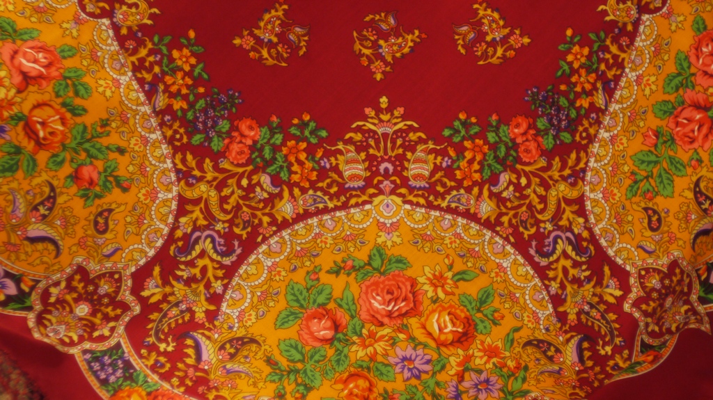 Короче, минут за 40 в Атриуме мы насчитали - из спортивного интереса - одиннадцать ПП платков, маленьких и больших, только на молодых девушках. Причем на большинстве - с очень старыми рисунками, я многие не смогла опознать. Ну точно из бабушкиных и маминых запасов!