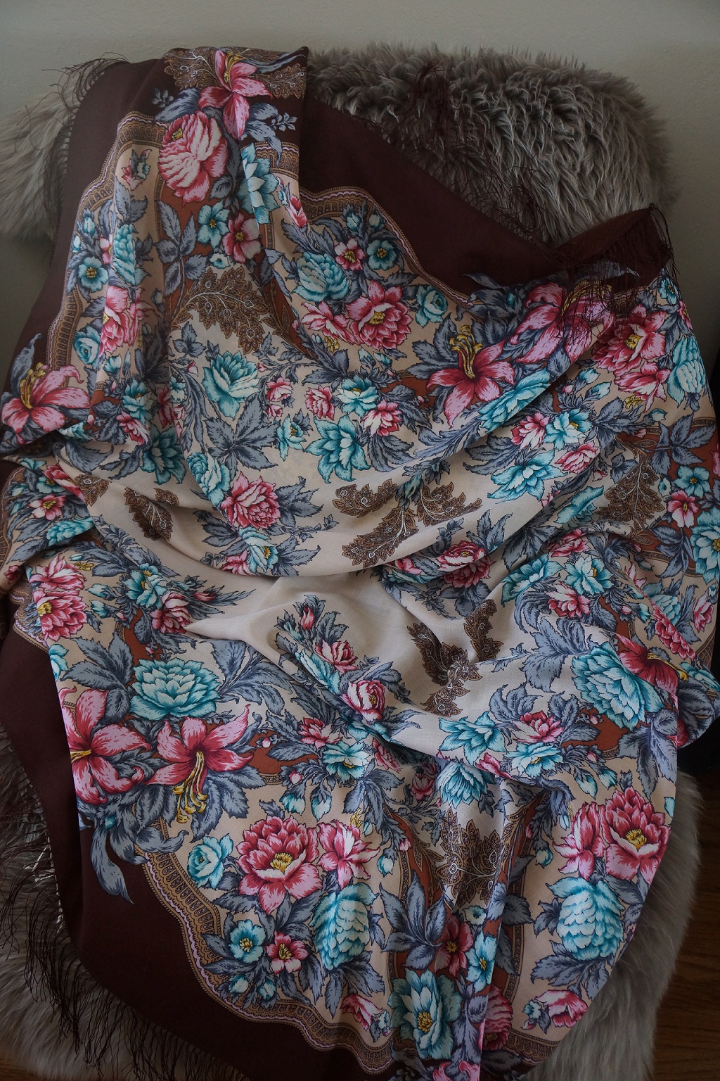 И удивительная шаль японского производства по рисунку Лидии Шаховской.