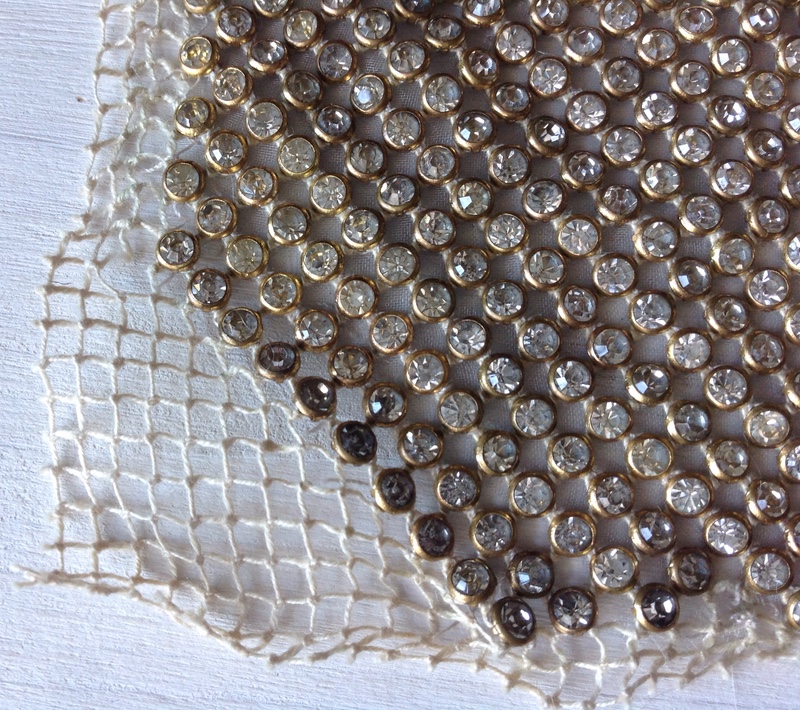 Сфотографировала (у меня есть демонтированный ридикюль столетней давности). Так выглядит сетка со стразами. П.С. И технология плетения страз бывает разной, взависимости от формы страза.