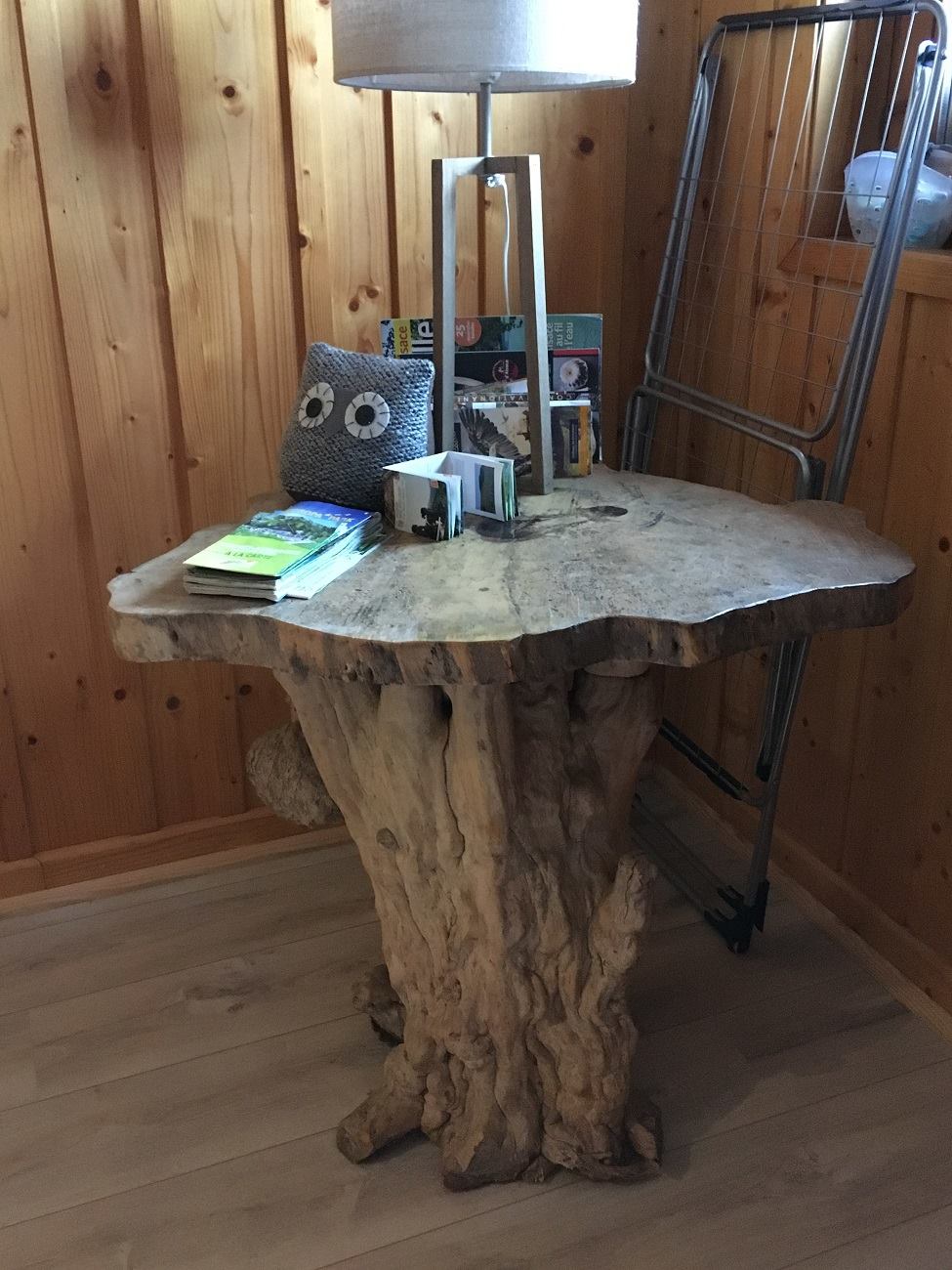 В доме много дерева, деревянные сундуки (изделия местного умельца), при входе столик из комля какого-то ценного дерева, название запамятовала.