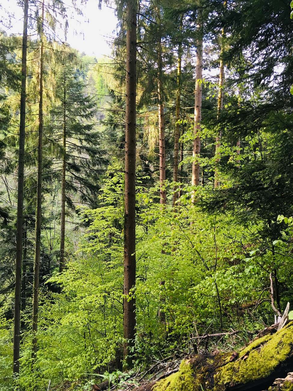 Путешествовали мы по Верхним Вогезам, среди самых высоких вершин массива, жили на хуторе Нёуз (Neuhouse) в нескольких км от Гран-Баллон – наивысшей точки Вогезов (1424 м). Хутор из нескольких шале находится на выселках коммуны Гольдбах-Альтенбах, в сердце большого природного парка Ballons des Vosges, на лесистом горном склоне на высоте около 800 м. Хозяйский участок – последний, прямо среди векового леса.