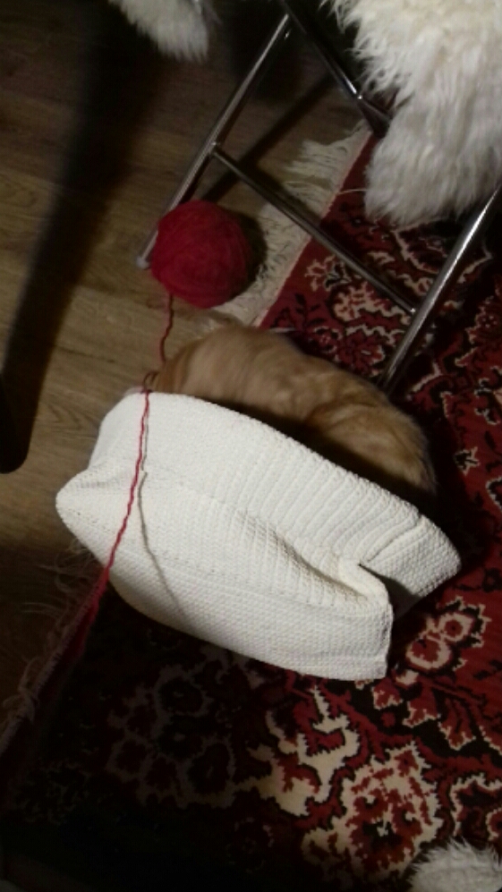 У меня Кузьма тоже приходит на колени и устраивается, неважно что там у меня: вышивка или вязание.