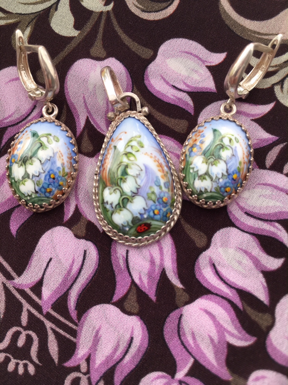 Люкс, финифть я уже демонстрировала здесь на стр.109. Для каждого времени года броши и серьги.
