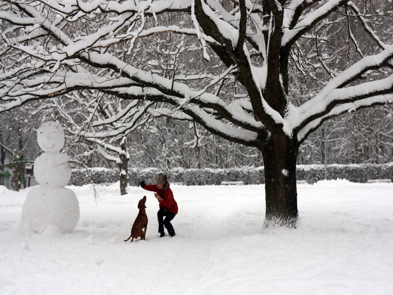Такие снегопады дворникам проклятие, а москвичам с детьми и собаками радость.