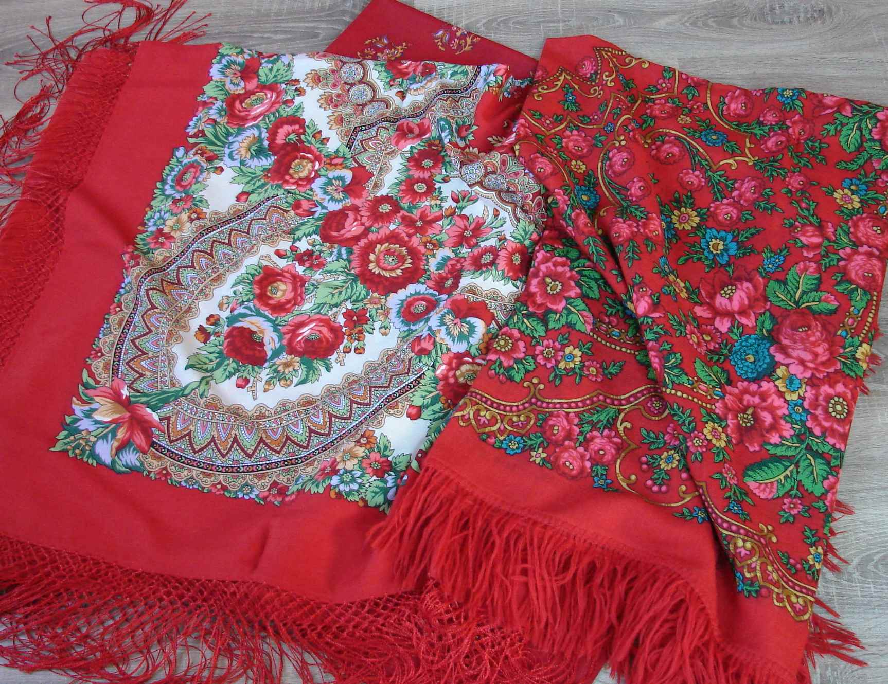 Эх, выяснилось, что у меня три красных платка от Ирины Петровны... есть и шали, но здесь только чисто красные платки