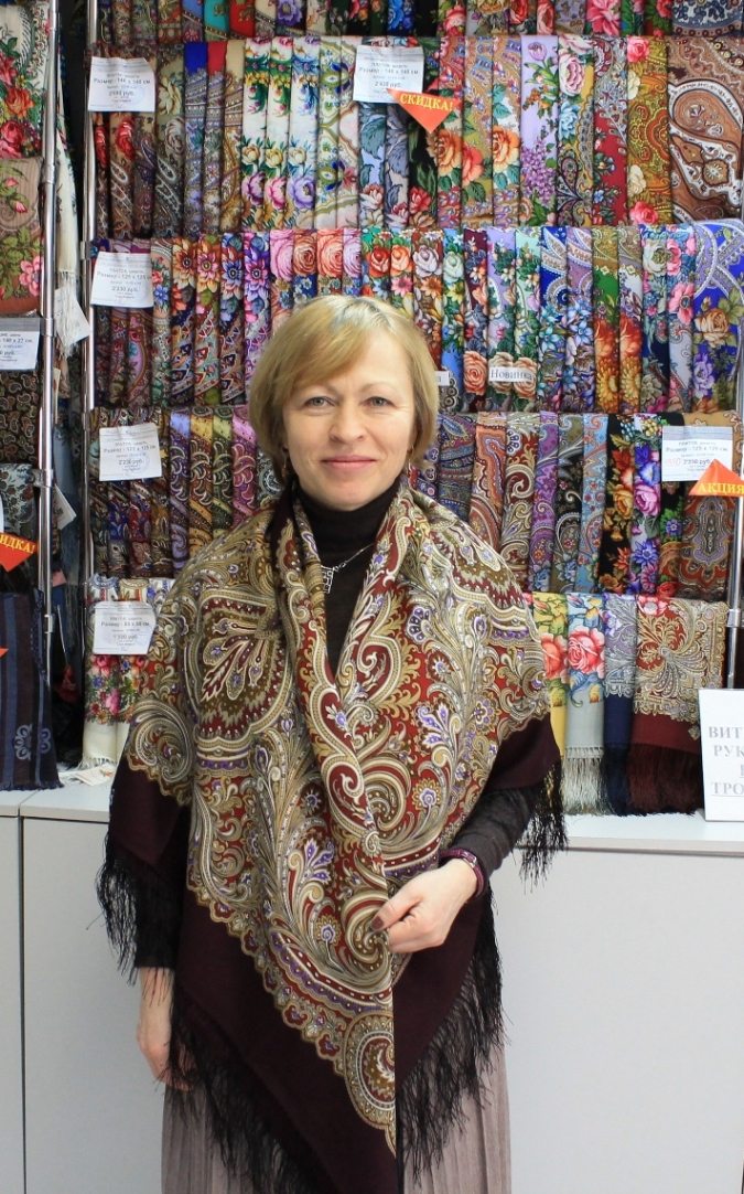 Оксана, наш продавец, успевала везде. Оксана, искренняя Вам благодарность за терпение, профессионализм, радушие и внимание! У Вас приятно покупать. Ни словом, ни мимикой, ни жестом не выказала усталости, скуки или недовольства нашими примерками. Мы , конечно, сознаем свой недуг и стараемся доставлять как можно меньше неудобств продавцам инормальным людям покупателям. Так что пока мы крутились перед зеркалом, довольно много покупателей ушло с новыми платками .