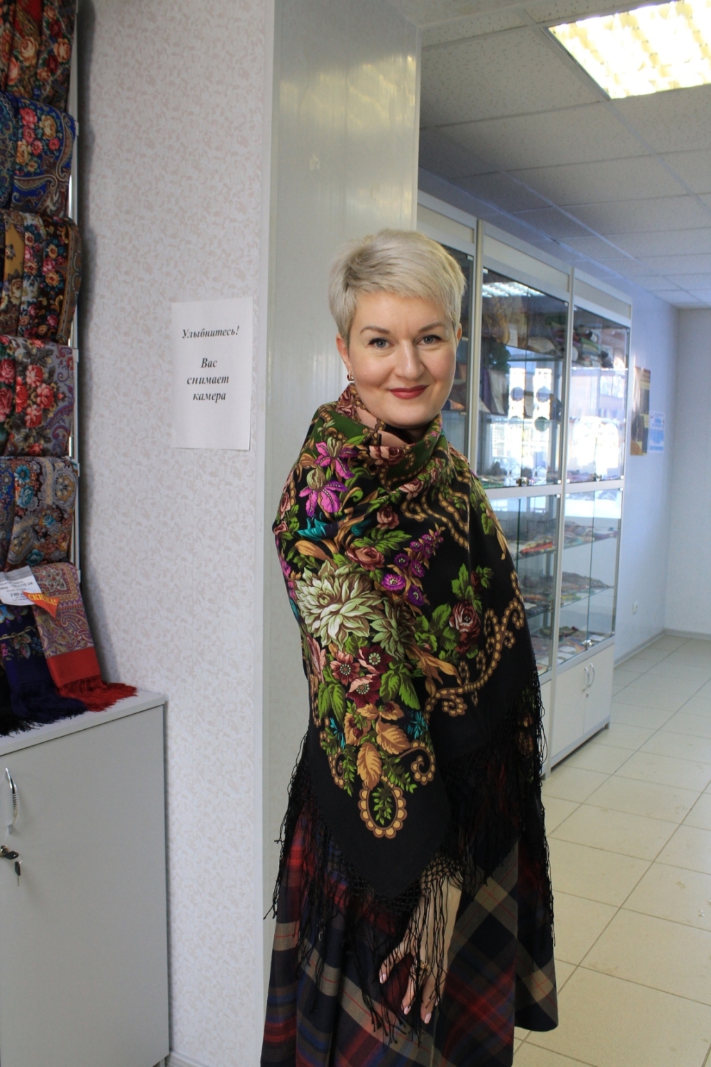 Оксана, наш продавец, успевала везде. Оксана, искренняя Вам благодарность за терпение, профессионализм, радушие и внимание! У Вас приятно покупать. Ни словом, ни мимикой, ни жестом не выказала усталости, скуки или недовольства нашими примерками. Мы , конечно, сознаем свой недуг и стараемся доставлять как можно меньше неудобств продавцам инормальным людям покупателям. Так что пока мы крутились перед зеркалом, довольно много покупателей ушло с новыми платками .