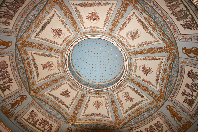 Большая Ротонда . Эта такая обязательная штука :) , в анфиладе комнат - круглое открытое помещение, состоит из восьми колонн, которое венчает сферический купол-потолок.
