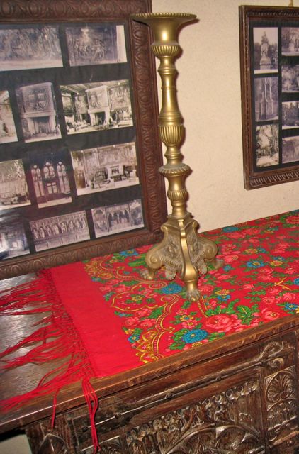 Добрый вечер, небольшое продолжение этой интересной темы. Снимок был сделан этим летом в бретонском замке Кериоле, когда-то построенном русской княгиней Зинаидой Юсуповой-Нарышкиной. Замок, сильно пострадавший от грабежей и урагана, постепенно восстанавливается новым владельцем, и на мой взгляд, русская шаль Торжок удачно вписалась в интерьер забавного чудо-замка.