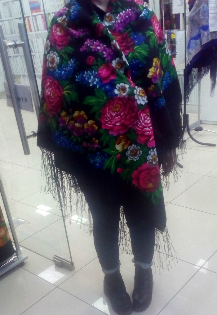Что сказать, мне больше всего понравился 19 колорит. Кому не идет черный грунт, то надо подумать перед покупкой. Цветы, кстати, крупно смотрятся в стопке шалей, :) потом куда-то эта крупность исчезает. Ткань отличная с "сатиновым блеском")) не знаю, как понятнее назвать этот эффект.