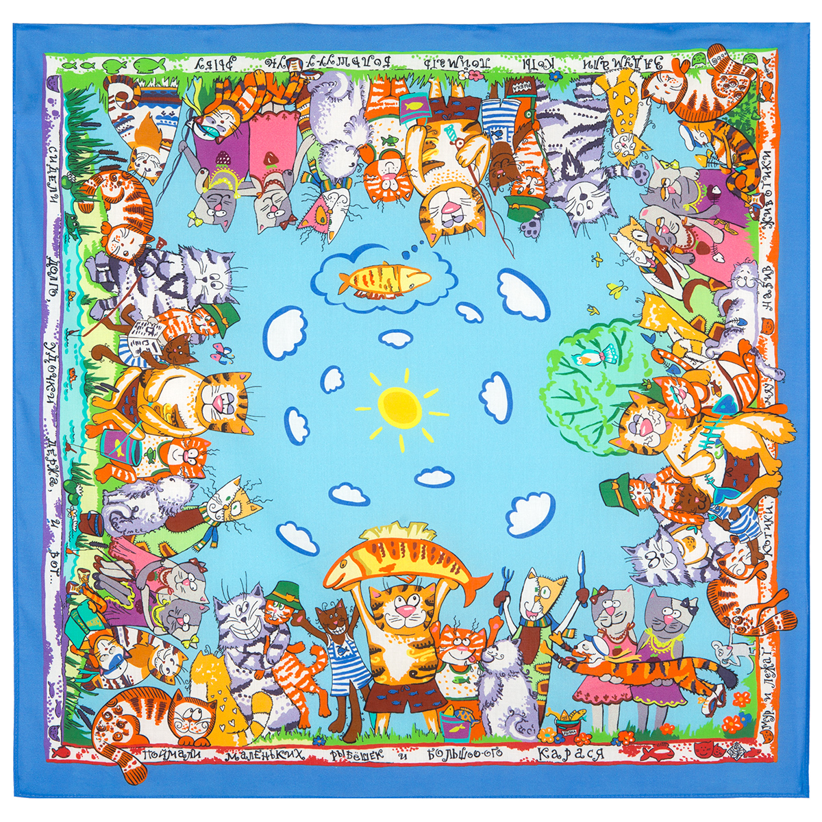 1242 КОТЫ НА РЫБАЛКЕ 72х72 (хлопок)