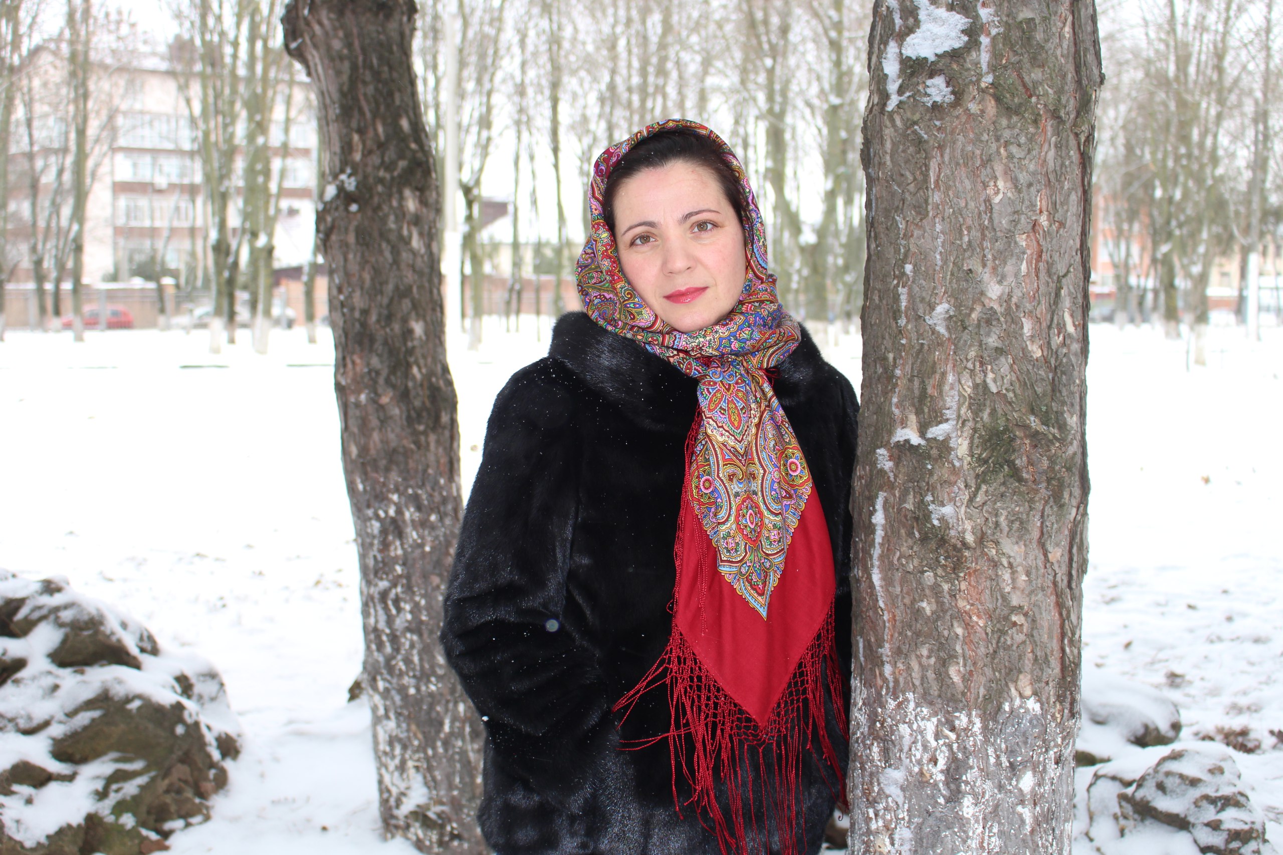 Обожаю на Вас этот платок, до дрожи, ни на ком она так не смотрится, как на Вас, при всем уважении к нашим дамам. Ещё была у меня крамольная мысль о покупке, вроде как на повседневку не особо что то выдающееся. Так после Вашего первого показа в голове всё поправилось. И я поняла, что Богатую невесту никогда не смогу носить и при этом выглядеть как Вы. А по другому я носить её не могу и не хочу. Так зачем пыжиться и что то изображать? Ну не моё это, как бы не хотелось.