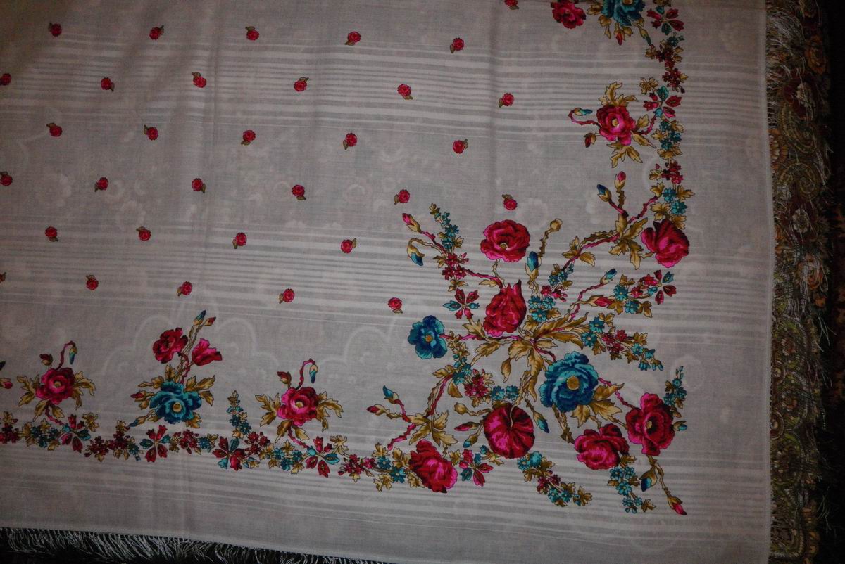 А Веснянку (125х125) подробнее с фрагментами выложу, наверное, в виртуальной коллекции. Хозяйка сказала, что такие платки дарила лет 8-9 назад В.И. Матвиенко ветеранам-женщинам. Пролежал все эти годы, пока не решились его продать.