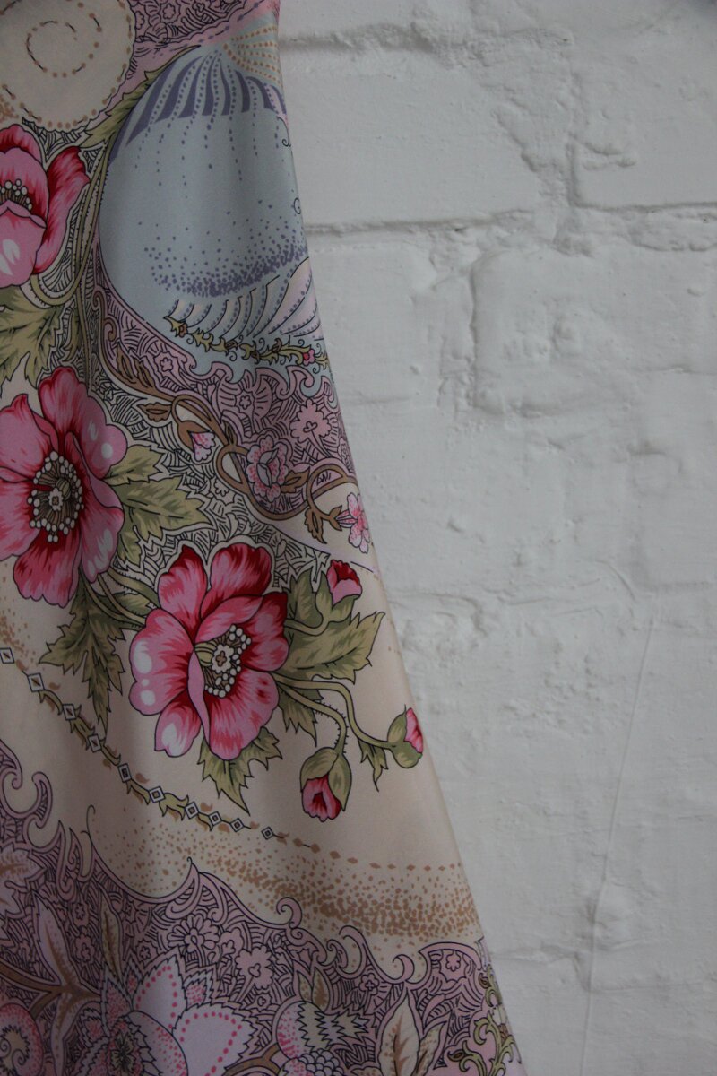 Купила к весне давно нравившуюся шелковую шаль. Три года думала, и вот, когда именно этот колорит сейчас сняли с производства, я очнулась! Ну прелесть же! Бахрому и часть каймы срезала до 4 см.