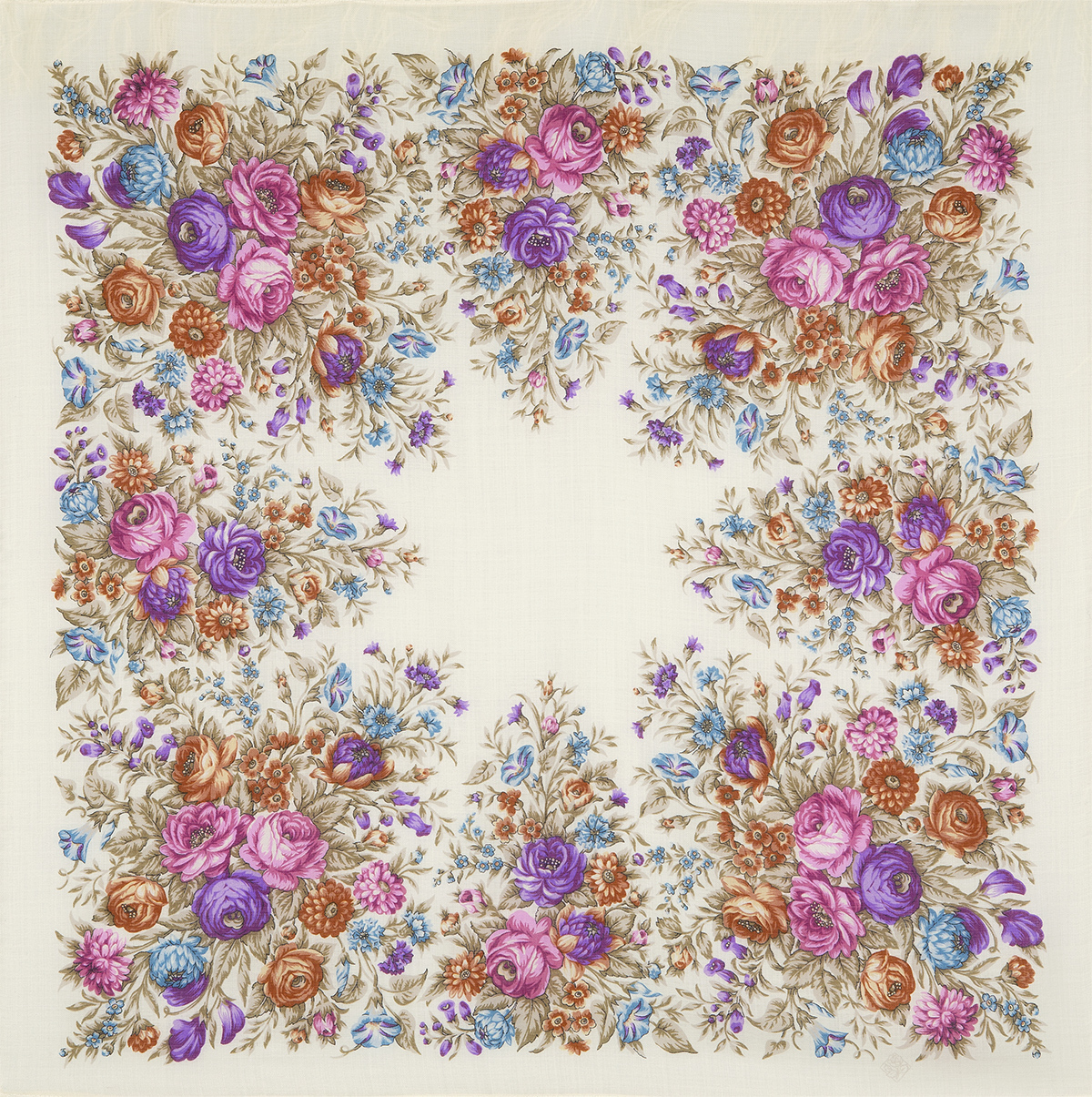 Таинственный вечер-14 выпускался на уплотненной шерстяной ткани в размере 150 с простой вискозной бахромой, сроки осень 2018 года. Артикул 1СН150-5-ПН - шаль(?)