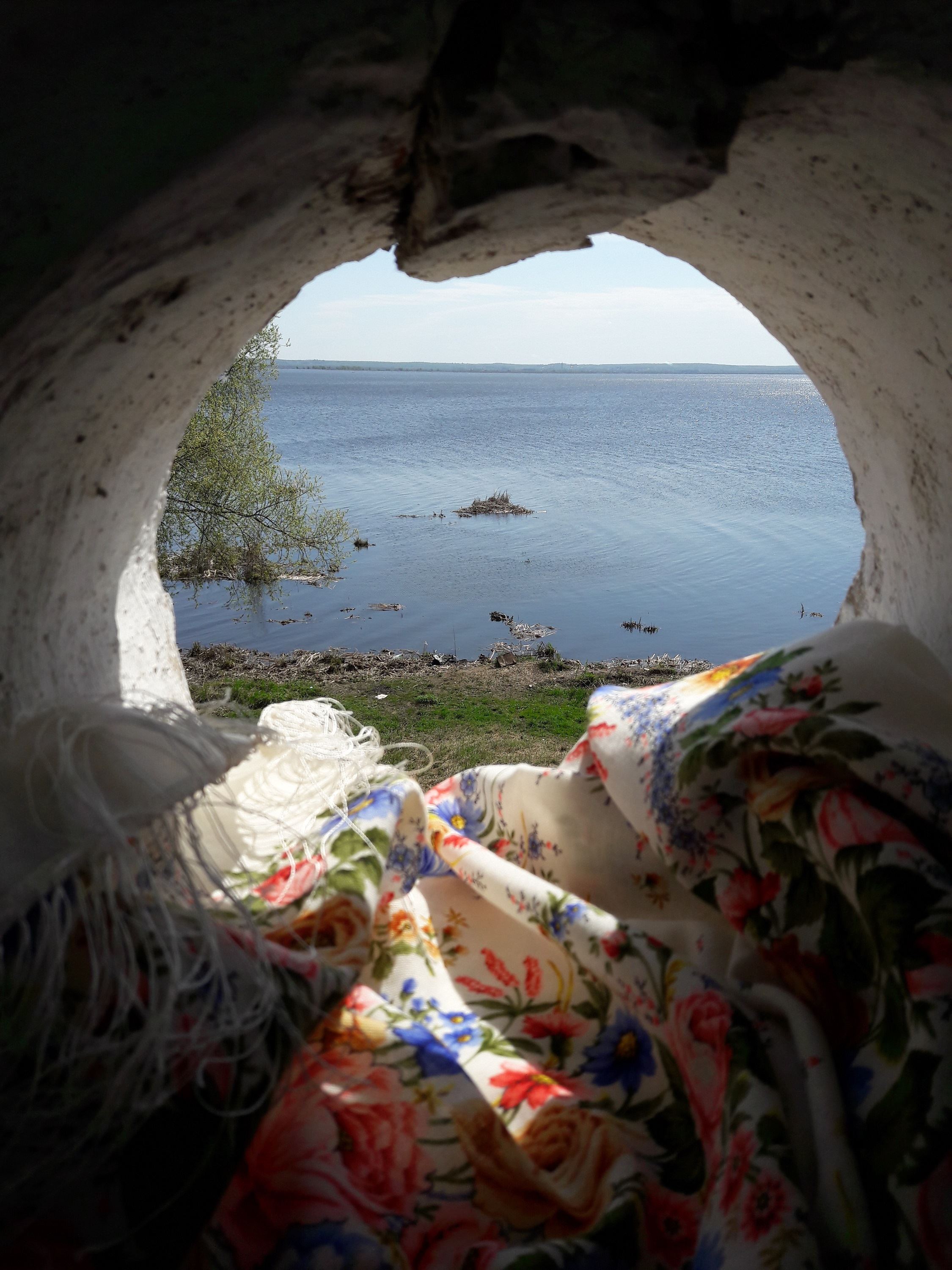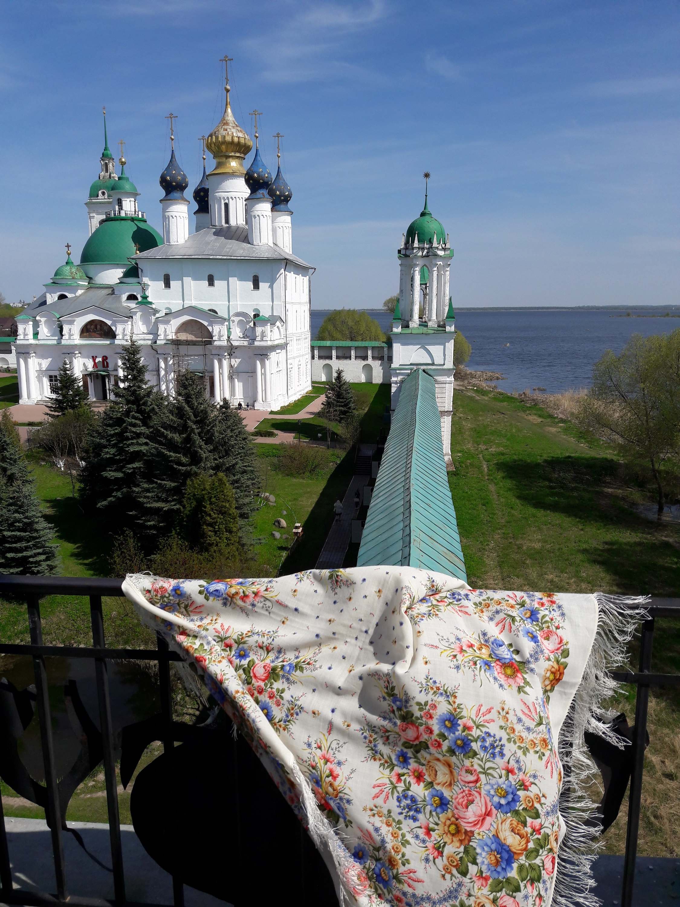 В этот раз мы поездили по Ярославской и Владимирской областям, повезло, что было солнечно. Но холоднее, чем в Подмосковье, особенно в районе озер, потому платки и шали пришлись очень кстати.