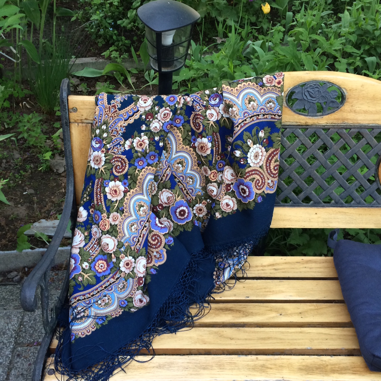 вот не поверите, сколько лет попой просиживаю эту скамейку и не одну шаль уже к ней пристраивала, но только сейчас углядела в ее орнаменте розы.