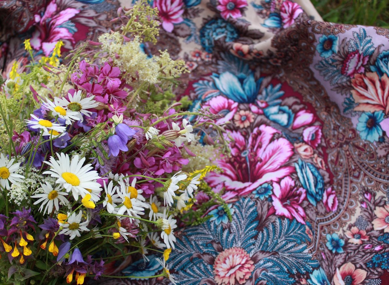 Полевые цветы потрясающе смотрятся на платке! Высокохудожественно!