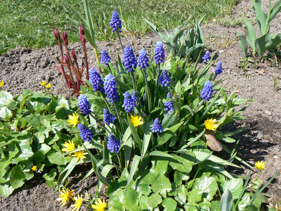 А меня на дачном участке встретили мускари и ещё что-то, не знаю что (100 км к северу от Москвы).